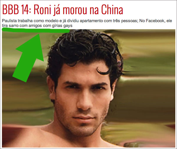 Modelo bonitão que se acha o engraçadinho. Supostamente tem um video pornô na internet, que seus amigos desesperadamente estão tentando excluir, além disso ele adora falar gírias gays.