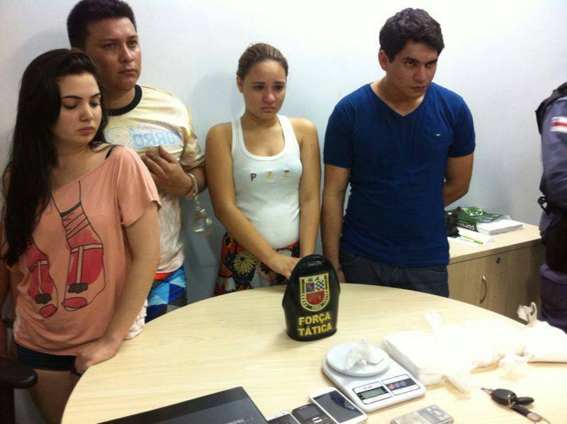 Informados de que as fornecedoras eras duas jovens de 18 Anos, Leticia Kelly Aguiar e Vívian Suzane Carvalho Freire. Os militares foram até as casas dessas pessoas, onde encontraram 2,5 kg de cocaína, R$ 90, além de duas balanças de precisão. Os quatro foram conduzidos ao 6º Distrito Integrado de Polícia (DIP) para registro da ocorrência e ali receberam voz de prisão.
